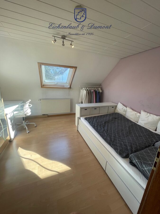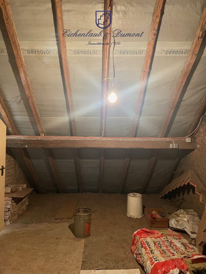 Die Raumaufteilung gestaltet sich wie folgt: Im Erdgeschoss befinden sich vier Zimmer, eine Küche, ein Bad, ein Flur sowie ein Balkon. Das Dachgeschoss umfasst ebenfalls vier Zimmer, eine Küche, ein Bad, einen Flur sowie eine große Terrasse.