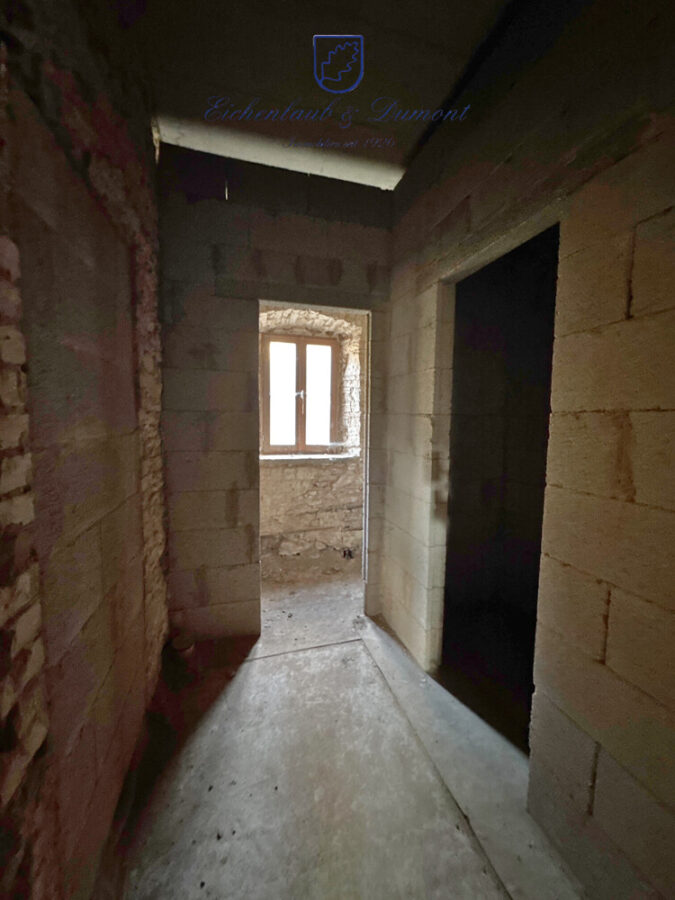 Die Immobilie wurde 2016 vollständig entkernt und befindet sich seitdem in einem von späteren Einbauten weitgehend befreiten Zustand. Dadurch eröffnen sich vielfältige Gestaltungsmöglichkeiten – von einer individuellen Grundrissgestaltung über die Ergänzung von Trennwänden bis hin zu möglichen Erweiterungen (z. B. Wintergarten, jeweils vorbehaltlich behördlicher Genehmigungen).