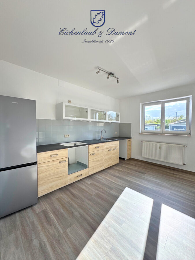 HINWEIS: Die Wohnung wird mit der abgebildeten Küche vermietet (ohne Herd, Backofen und Waschmaschine). Die Warmwasseraufbereitung erfolgt über Strom.
