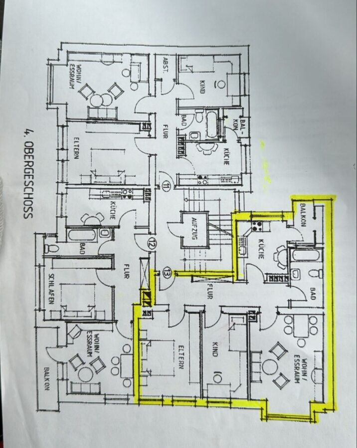Im 4. OG des gepflegten Mehrfamilienhauses gelegen, ist die Wohnung über das innenliegende Treppenhaus oder den Personenaufzug leicht erreichbar.