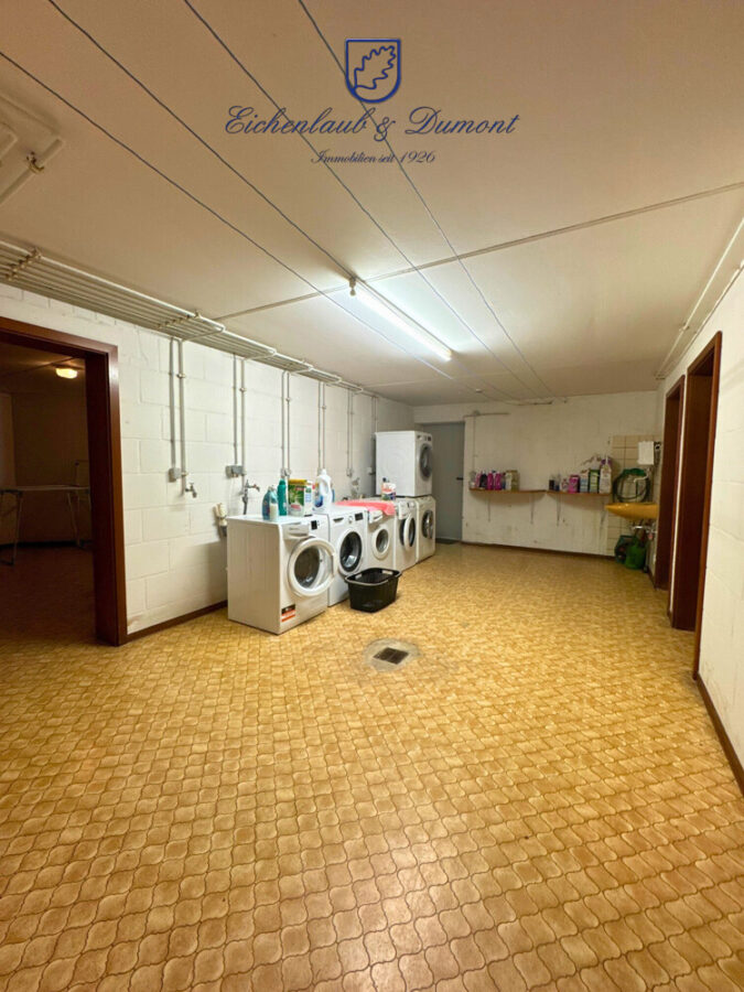 Ein eigener abgeschlossener Kellerraum und der eigene Waschmaschinenanschluss befinden sich im Untergeschoss des Gebäudes.