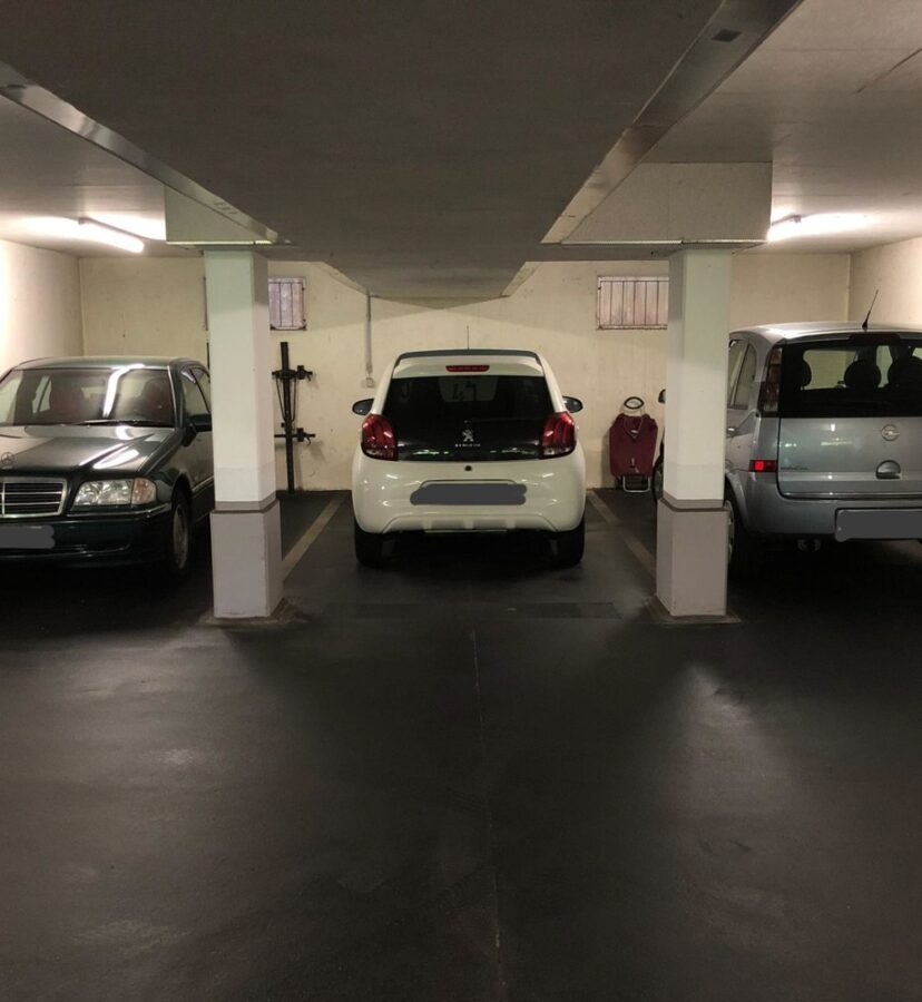 Eine Tiefgarage befindet sich im Untergeschoss. Der dort zur Wohnung gehörende Platz wird für 60,- € / Monat mitvermietet.